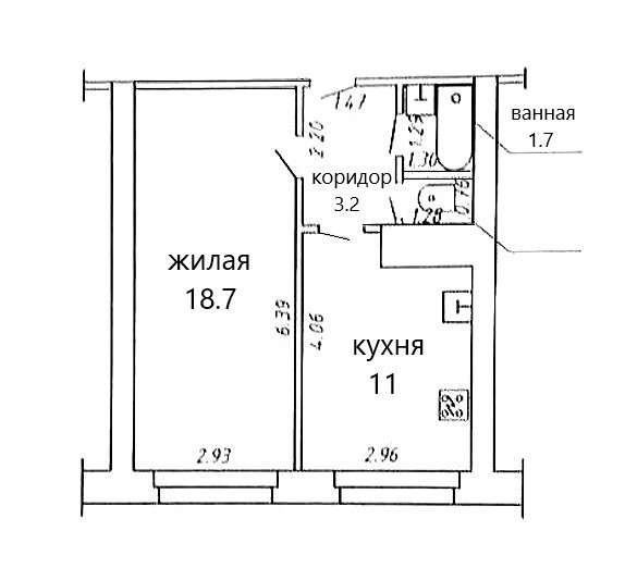 Площадь общая: 35,6 м², жилая: 18.7 м², кухня: 11 м².