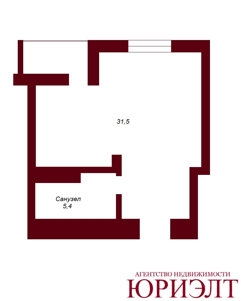 - Санузел: 5,4 м²