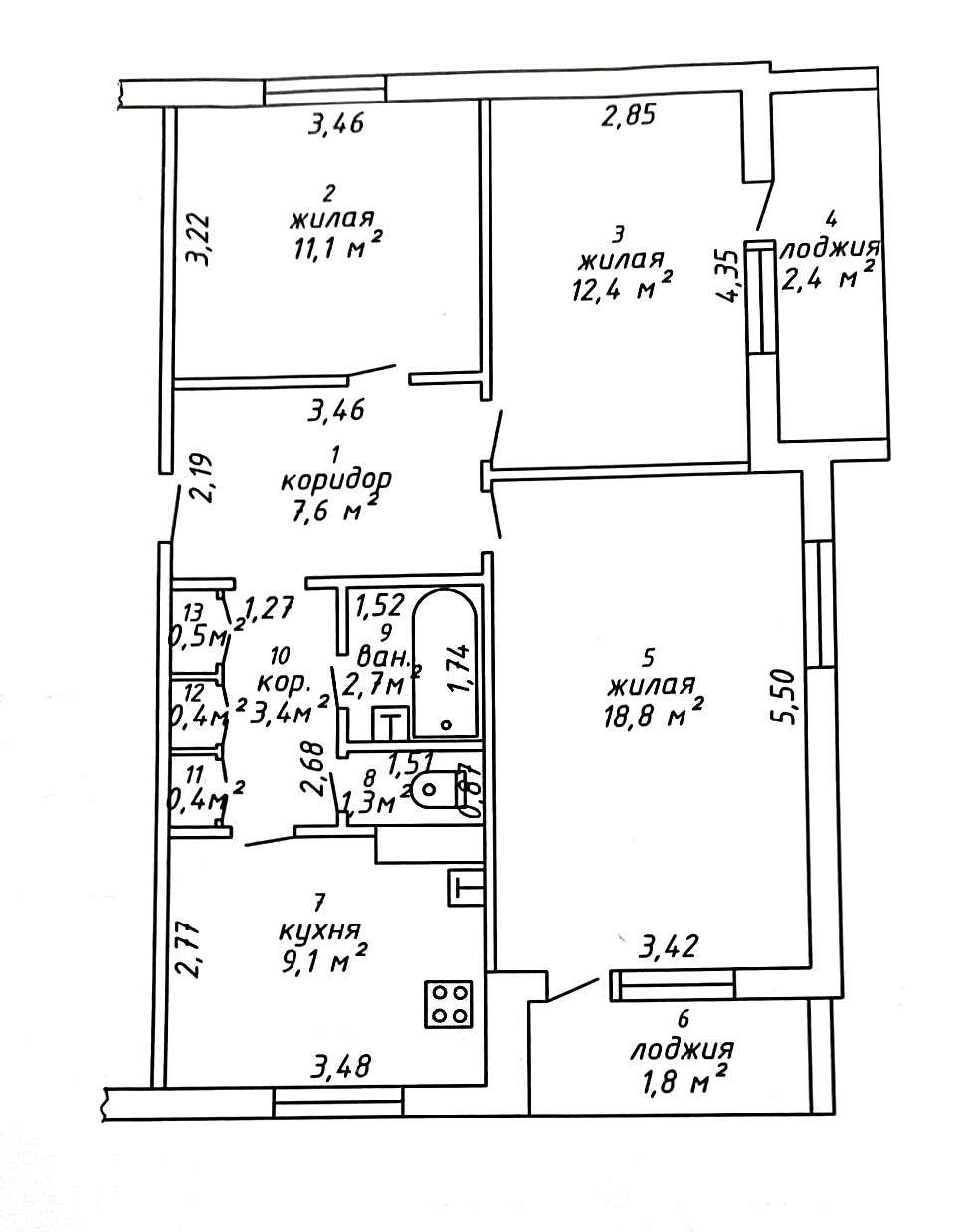 Продаётся 3-комнатная квартира по адресу: ул. Энтузиастов, д. 34.