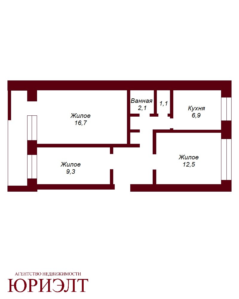 Квартира общей площадью 60,4 м2, расположена на 1-м этаже 5-этажного кирпичного дома 1977 года постройки. По планировке в квартире предусмотрены 3 изолированные комнаты, кухня, коридор и раздельный санузел.