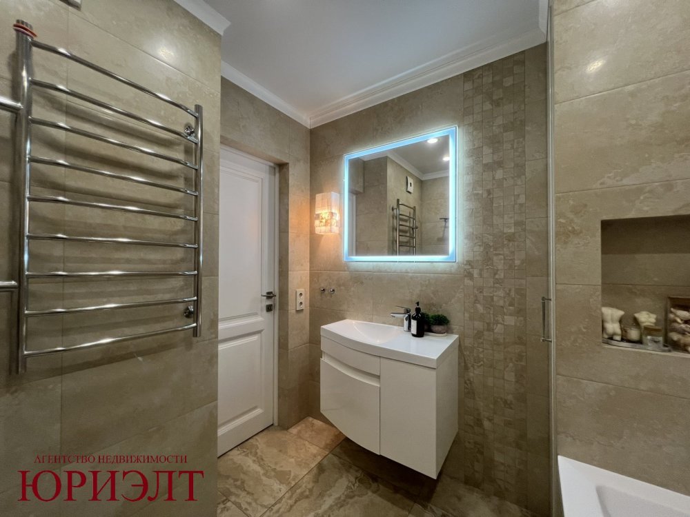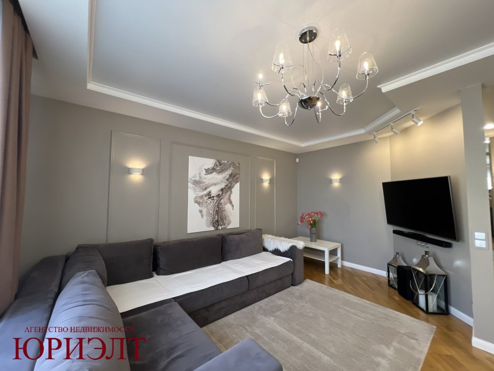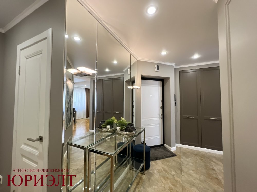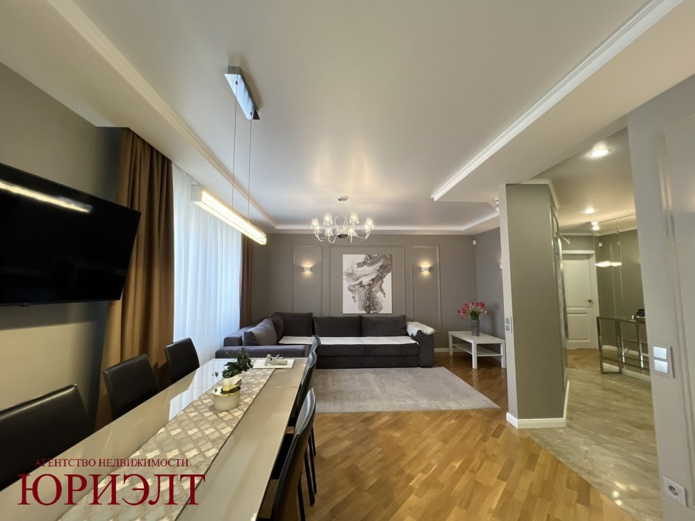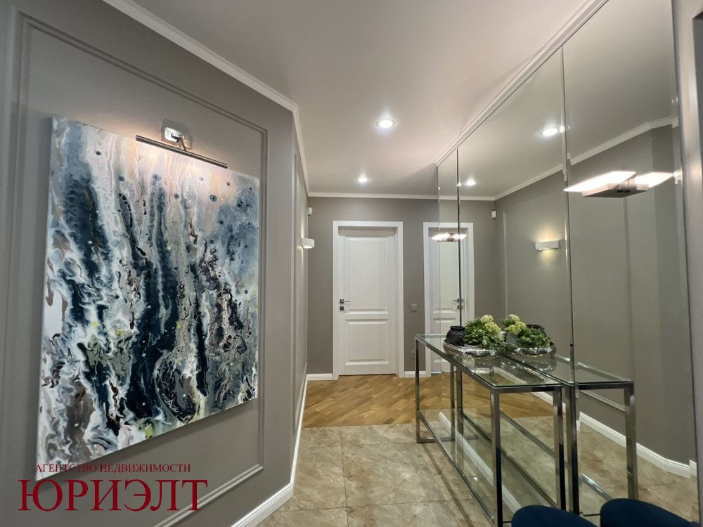 Ремонт в квартире выполнен в классических тонах, в отделке использовались натуральные материалы (напольное покрытие - паркет, межкомнатные двери - массив, потолок - снежка), много сценариев освещения.