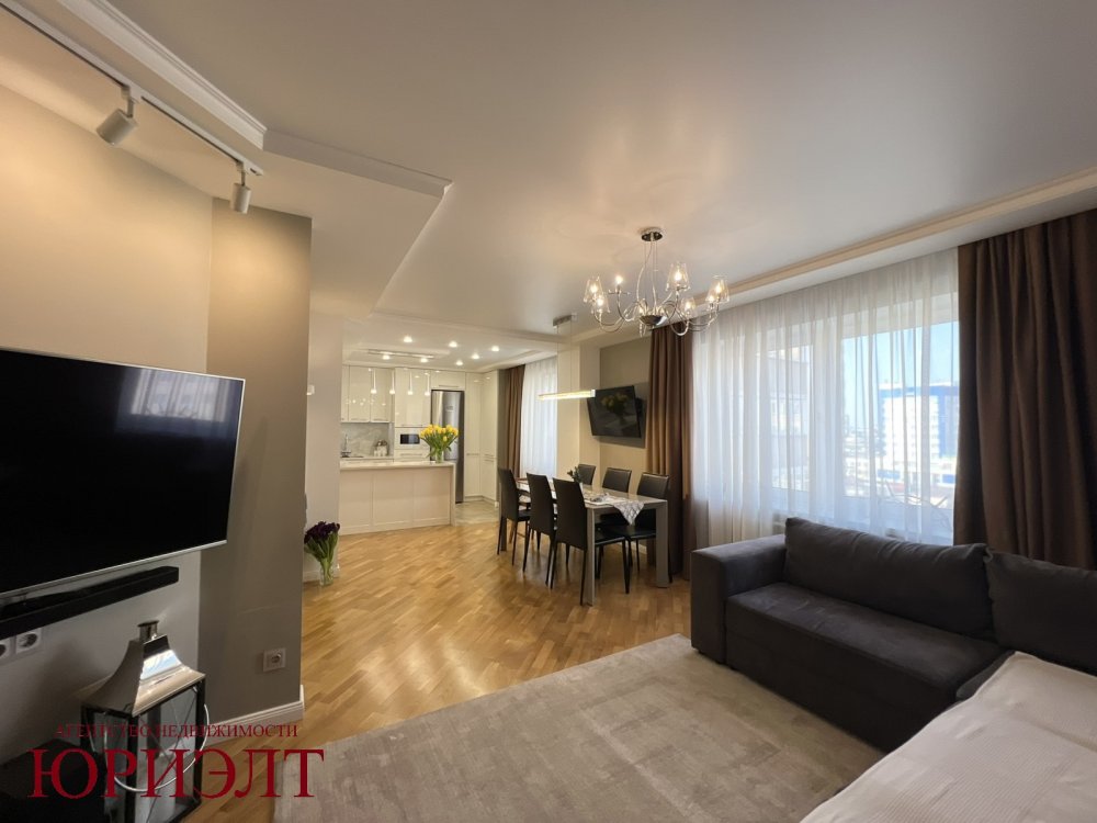 В квартире современная продуманная планировка: кухня-гостиная, 2 изолированные спальни, 2 санузла, кладовая, много мест для хранения, просторная лоджия.
