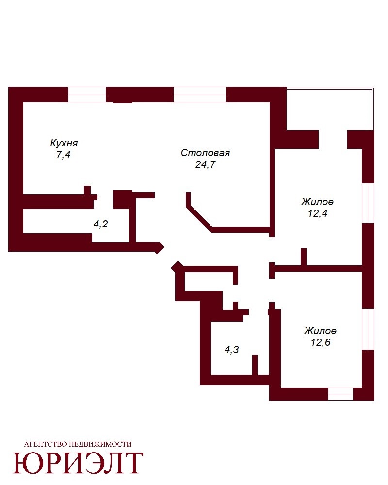 Общая площадь - 79,5 кв.м., 49,7 кв.м., кухня-гостиная - 32,1 кв.м.