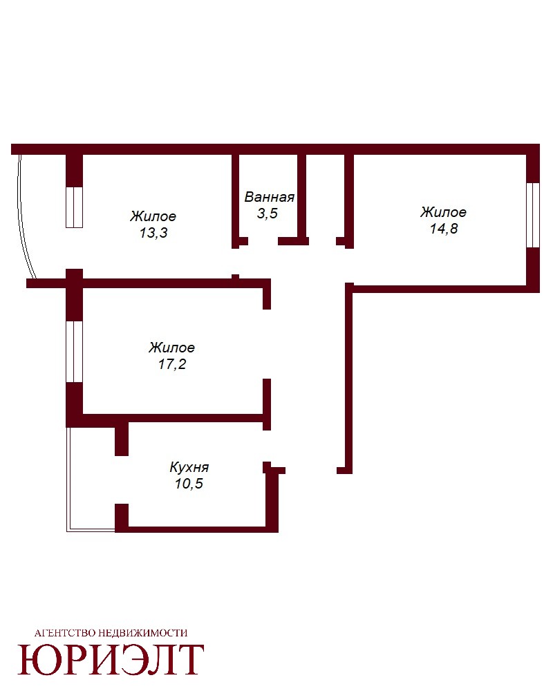 Квартира расположена на 1-м этаже панельного 9-этажного дома 2013 года постройки. Общая площадь квартиры с двумя лоджиями составляет 79,7 м2, жилая площадь - 45,3 м2, из которых гостиная площадью 17,3 м2, две просторные спальни площадью 14,8 м2 и 13,3 м2 соответственно (из одной, из которых осуществляется выход на застекленную лоджию), кухня площадью 10,5 м2, из которой также осуществляется выход на застекленную лоджию, раздельный санузел, коридор - 13,4 м2.