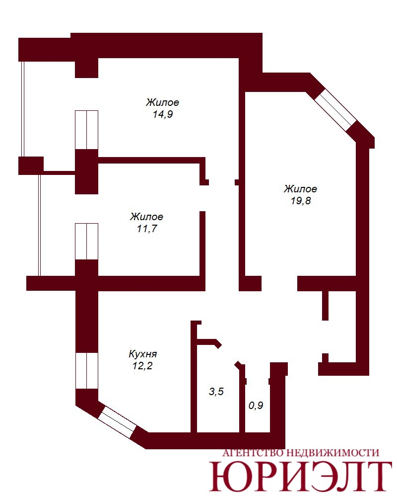 Подойдёт для большой семьи: общая площадь квартиры - 83,6 м2, в которую входят 3 изолированные комнаты (2 из них с выходом на большие лоджии), просторная кухня 12,2 м2, раздельный санузел, гардеробная и коридор.