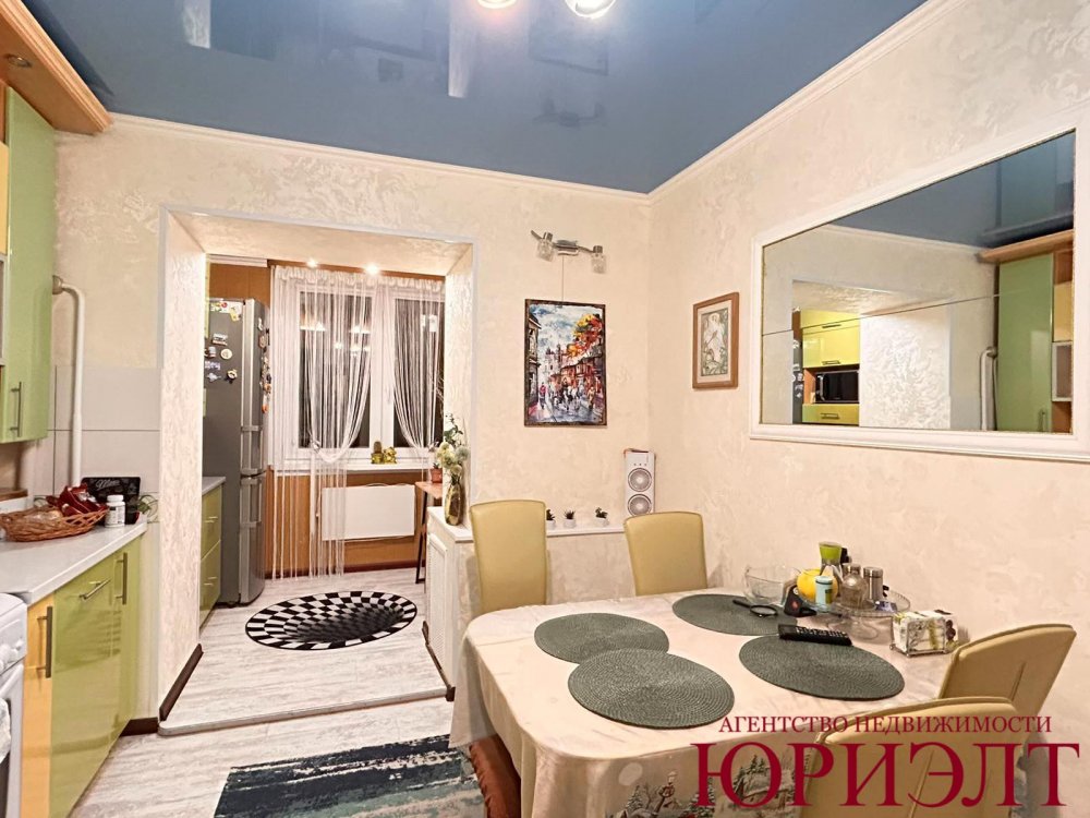 Отличное жилое состояние: на полу ламинат; потолки снежка, в кухне - натяжной; санузел облицован керамической плиткой, межкомнатные двери - массив, входная - двойная (металлическая+массив); лоджия, выходящая из кухни, утеплена со всех сторон, на второй - выведено электричество, освещение, застеклена деревянными окнами. Состояние - заезжай и живи.