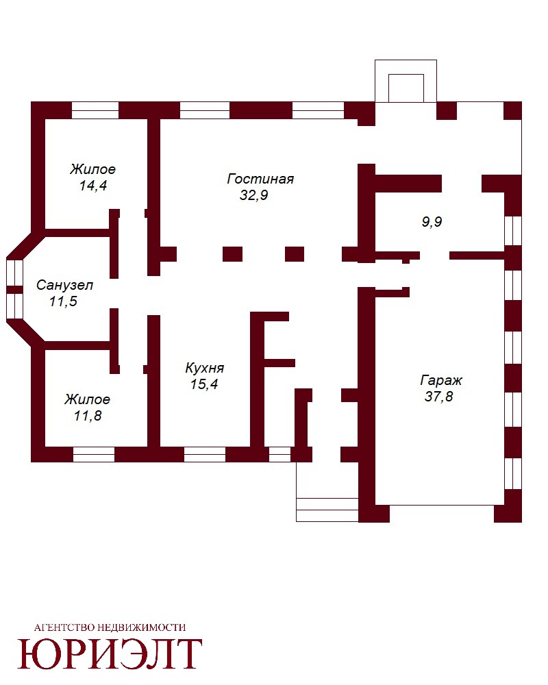 - Площади: Общая площадь (по СНБ) — 184,0 кв.м (с учетом гаража). Общая площадь -- 133,3 кв.м, Жилая — 59,1 кв.м. Кухня — 15,4 кв.м.