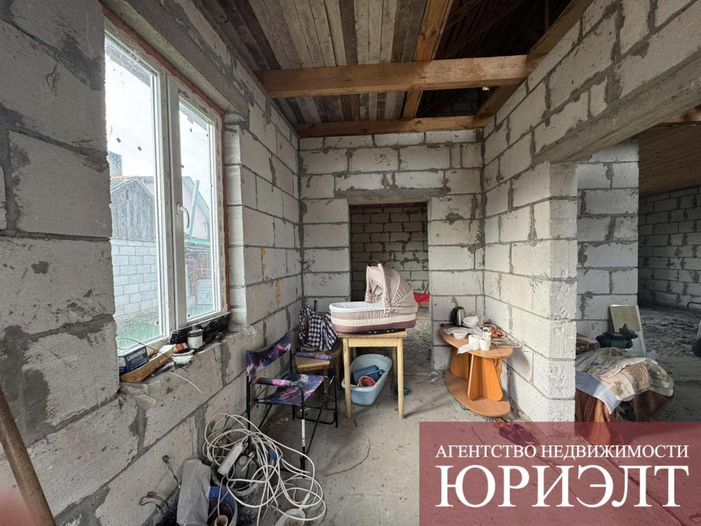 На участке возведена коробка из блока.